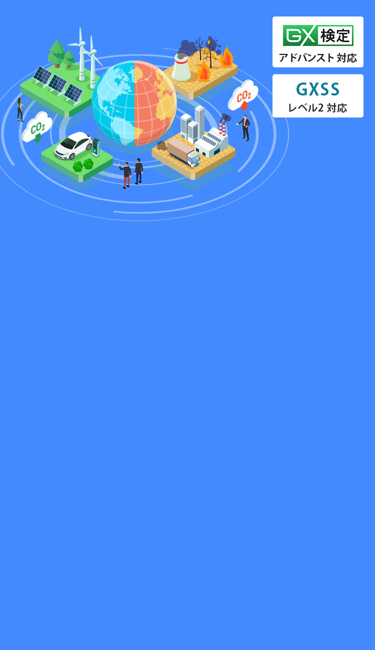 【GXSS レベル2・GX検定 アドバンスト対応】Scope1,2の算定や開示のベースとなる記載ができ、企業共通の排出量削減手法を説明できる力を身に付ける講座です。GX推進・サステナビリティ部門の担当者として、より実務に活かせる知識の習得を目指します。日本初「環境省 脱炭素アドバイザー アドバンスト」の認定を受けたGX検定 アドバンストに完全対応しています。