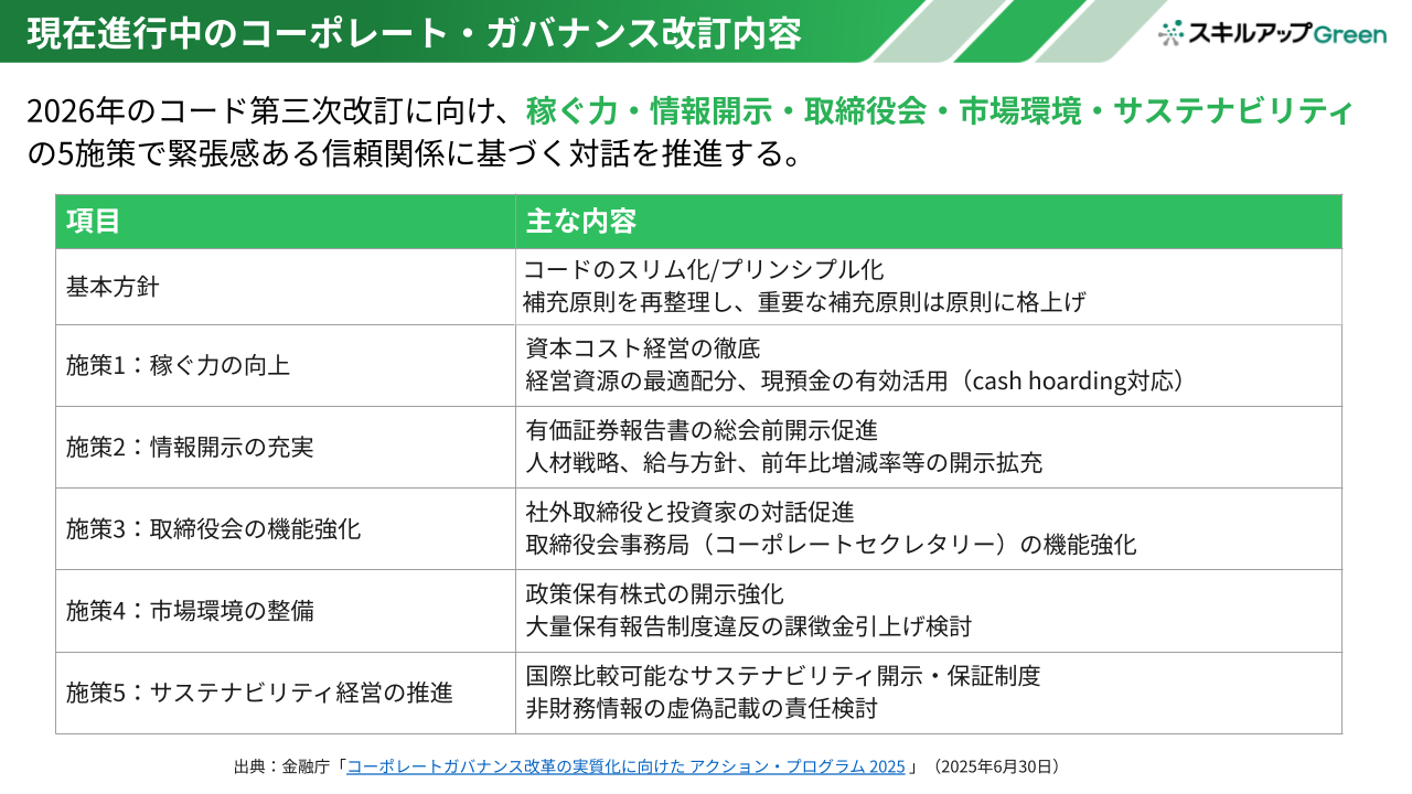 世界的な機関投資家の影響力拡大を背景に、コーポレートガバナンス改革への実質的対応は避けて通れない経営課題です。2026年にはコーポレートガバナンス・コードの第三次改訂が予定されており、形式から実質へと改革の焦点が移っています。