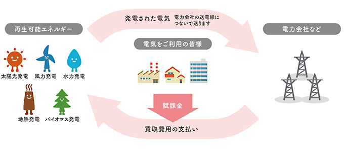 FIT制度の正式名称は「Feed-in Tariff」であり、日本語で「固定価格買取制度」の意味になります。再生可能エネルギーによる電気を、電力会社が一定の価格で一定期間買い取ることを国が保証した制度のことで、2012年7月に開始されました。