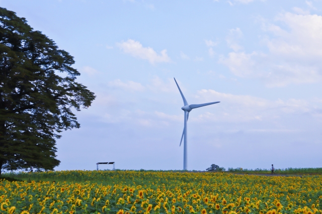 風力タービンを回転させることで発生する風力エネルギーを電力に変換し発電する仕組み -