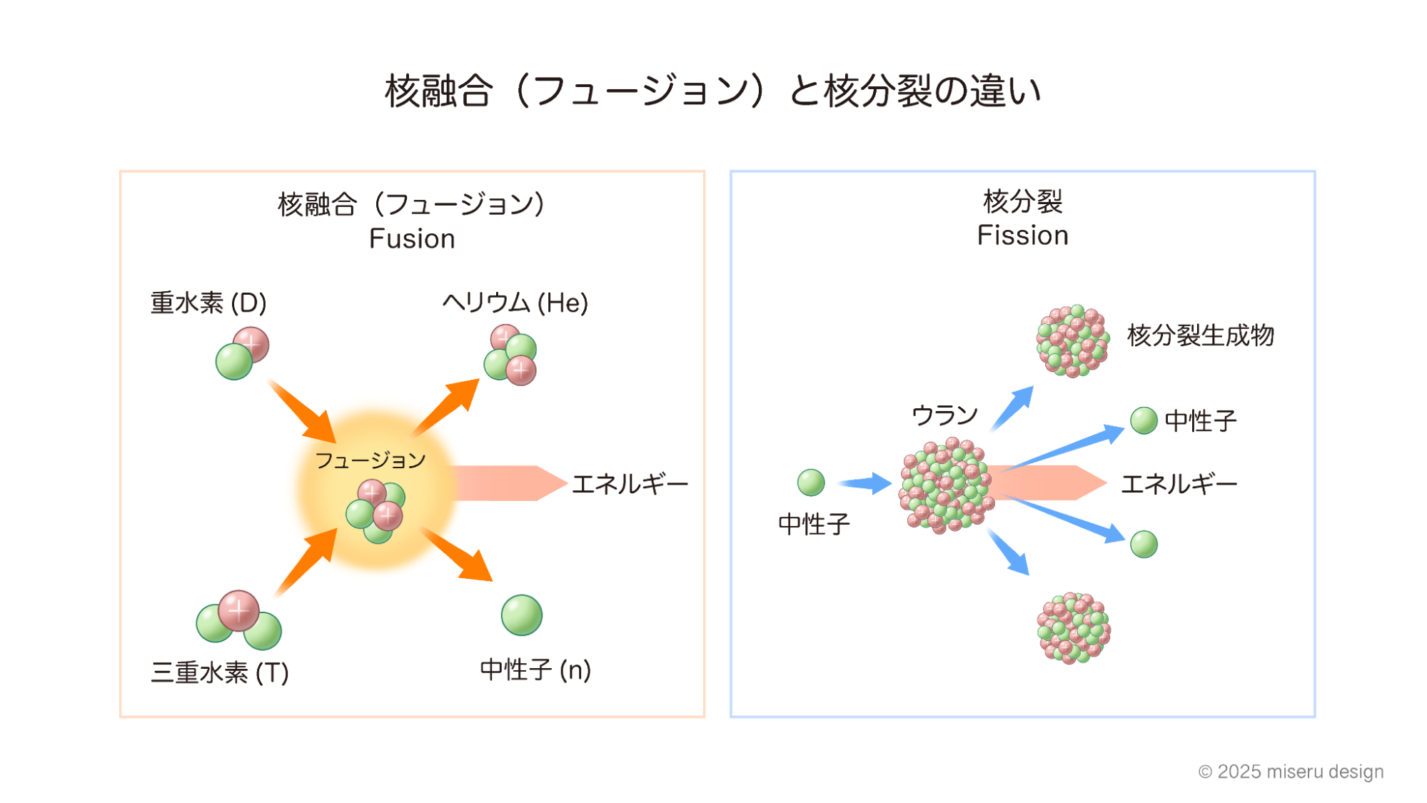 原子力発電は、ウランなどの大きな原子核を分裂させる「核分裂」から抽出される多大なエネルギーを発電に利用する仕組みです。しかし、原子力発電はその過程で放射性廃棄物を排出します。高レベルの放射性廃棄物は人体や環境に影響を及ぼすため、地上での管理は困難で、地下深くに貯蔵する必要があります。一方、核融合発電は放射性廃棄物をほぼ発生しません。